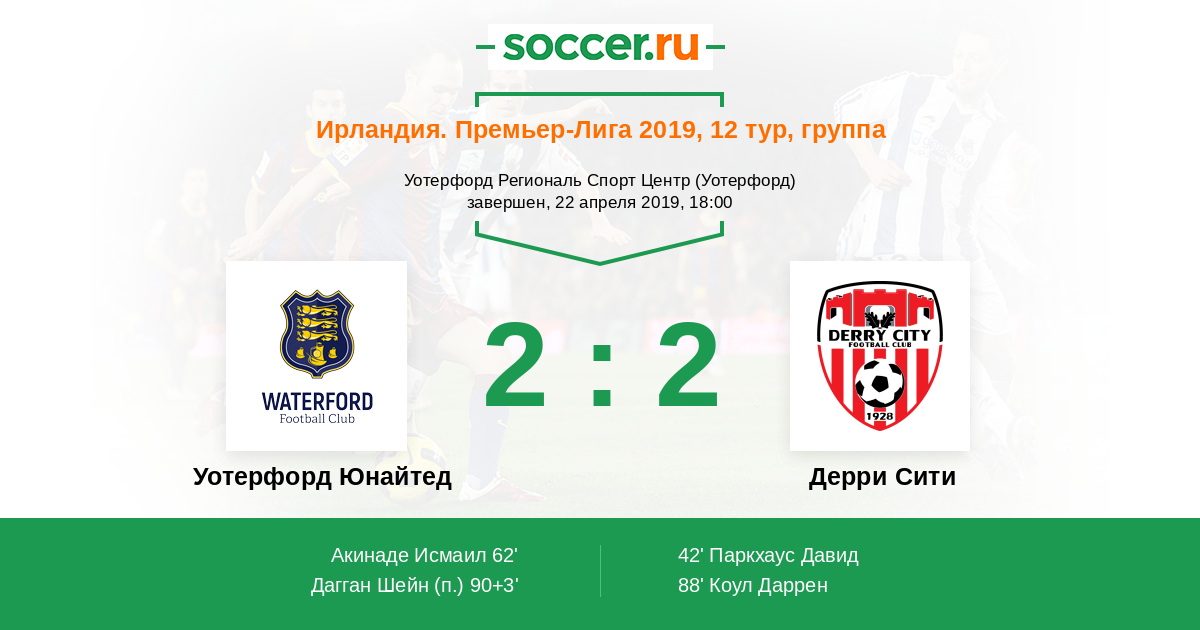 Протокол матча Уотерфорд Юнайтед против Дерри Сити