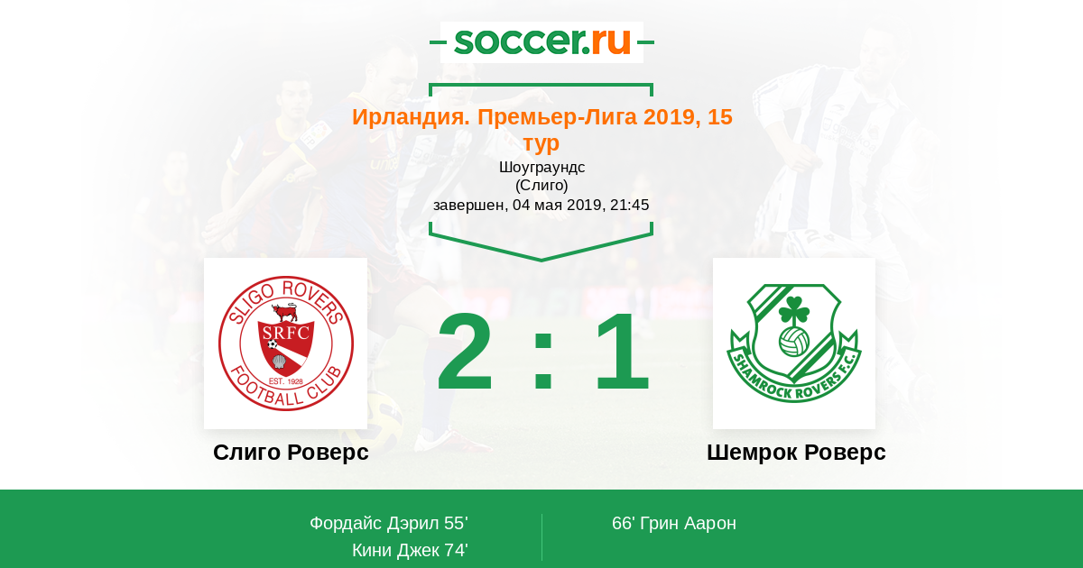 Протокол матча Слиго Роверс против Шемрок Роверс