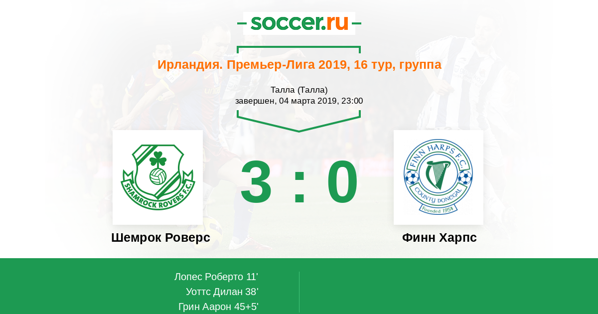 Протокол матча Шемрок Роверс против Финн Харпс