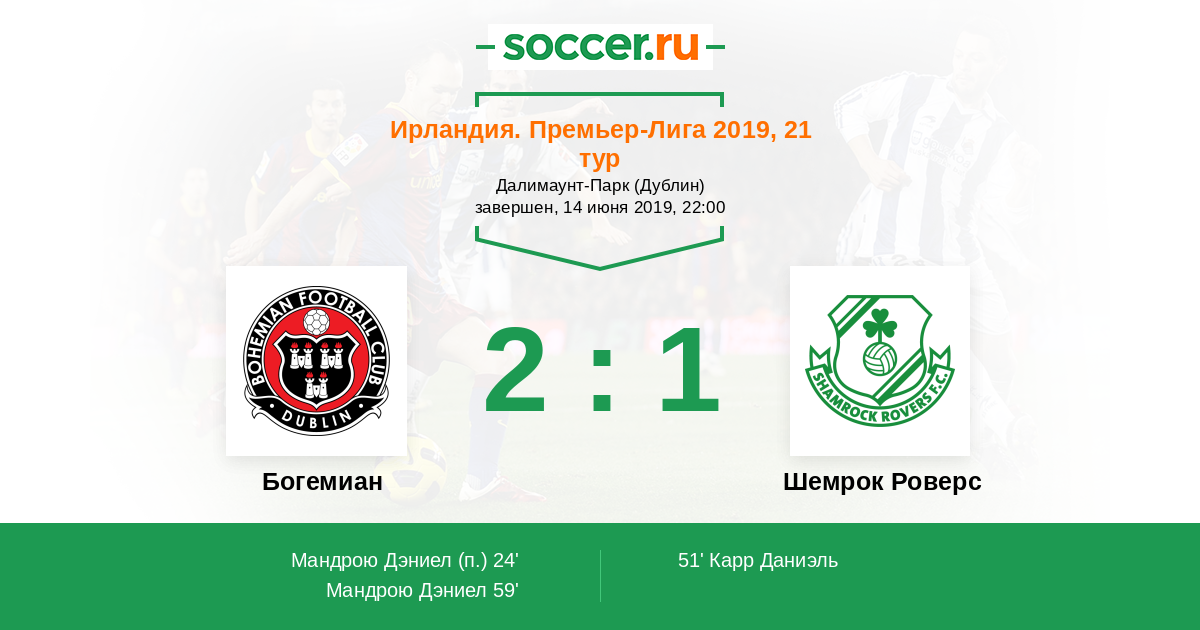 Протокол матча Богемиан против Шемрок Роверс