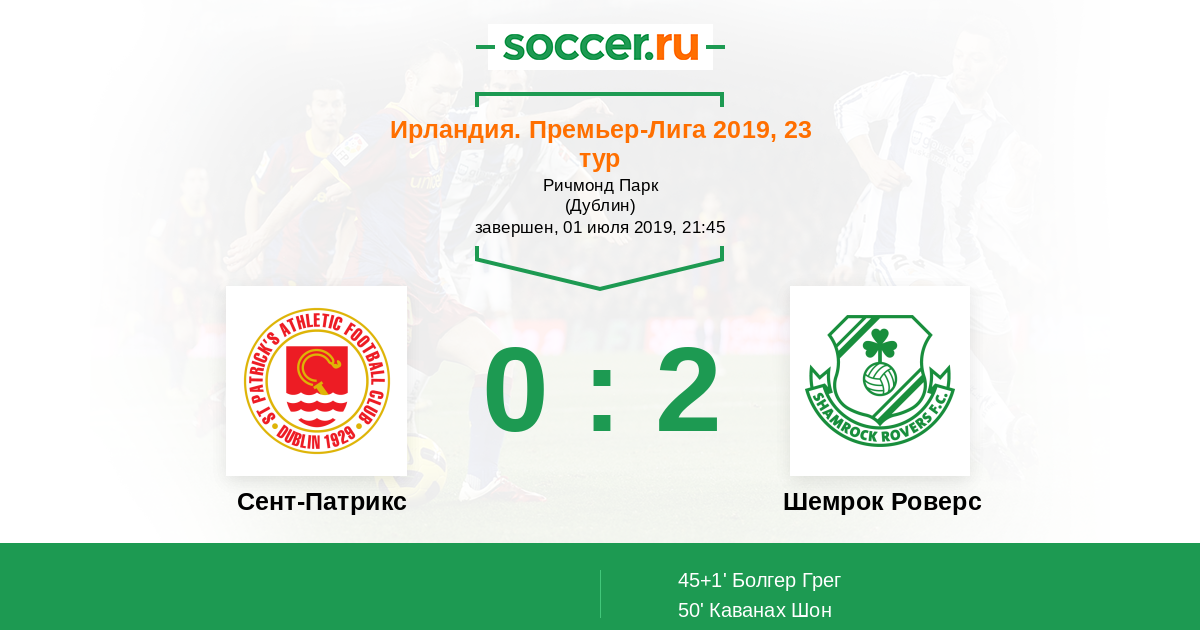 Протокол матча Сент-Патрикс против Шемрок Роверс