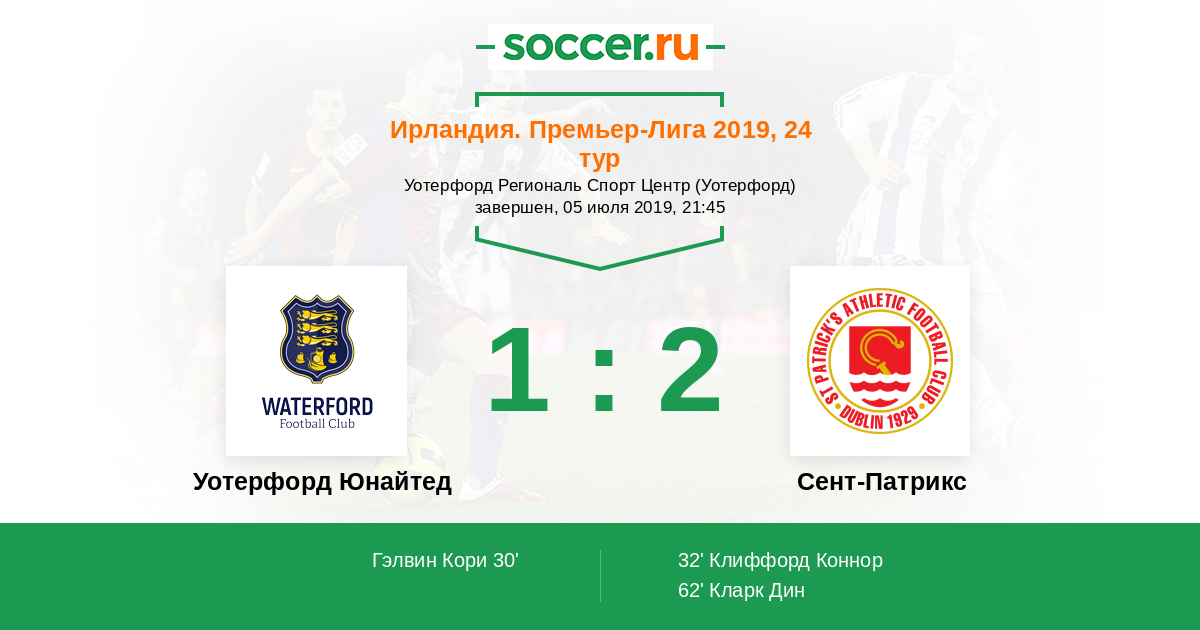 Протокол матча Уотерфорд Юнайтед против Сент-Патрикс
