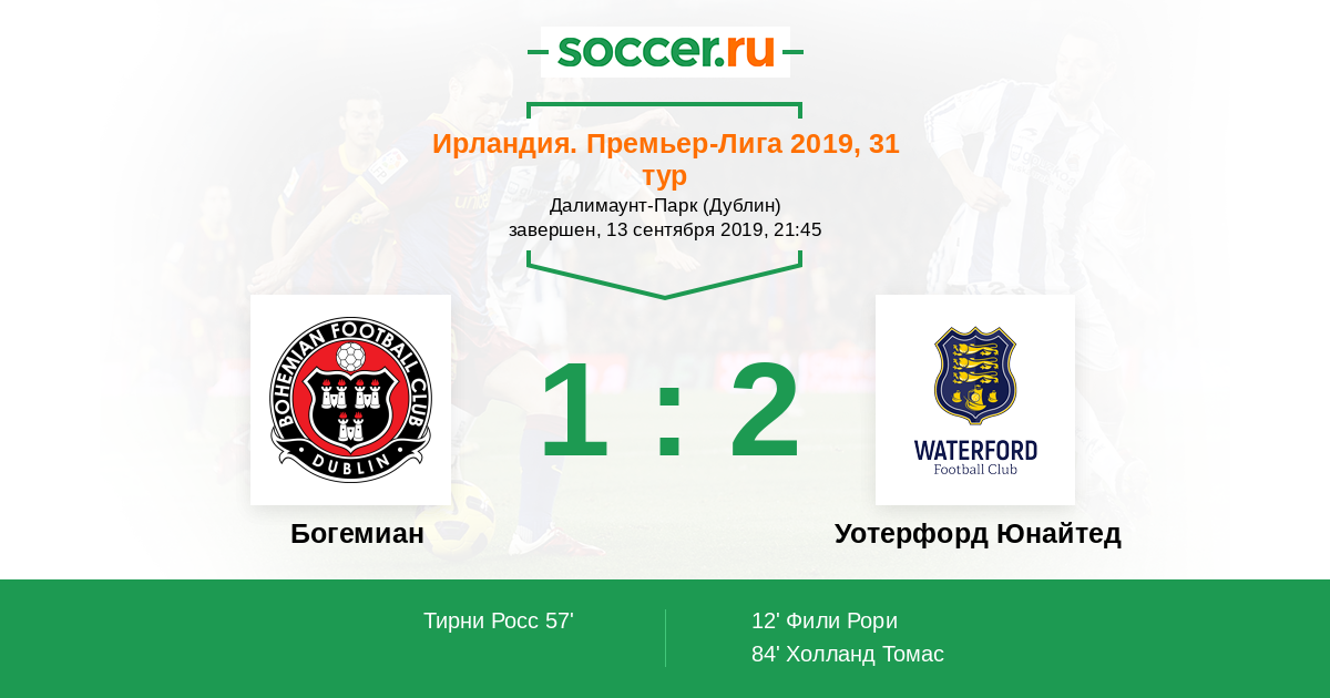 Протокол матча Богемиан против Уотерфорд Юнайтед
