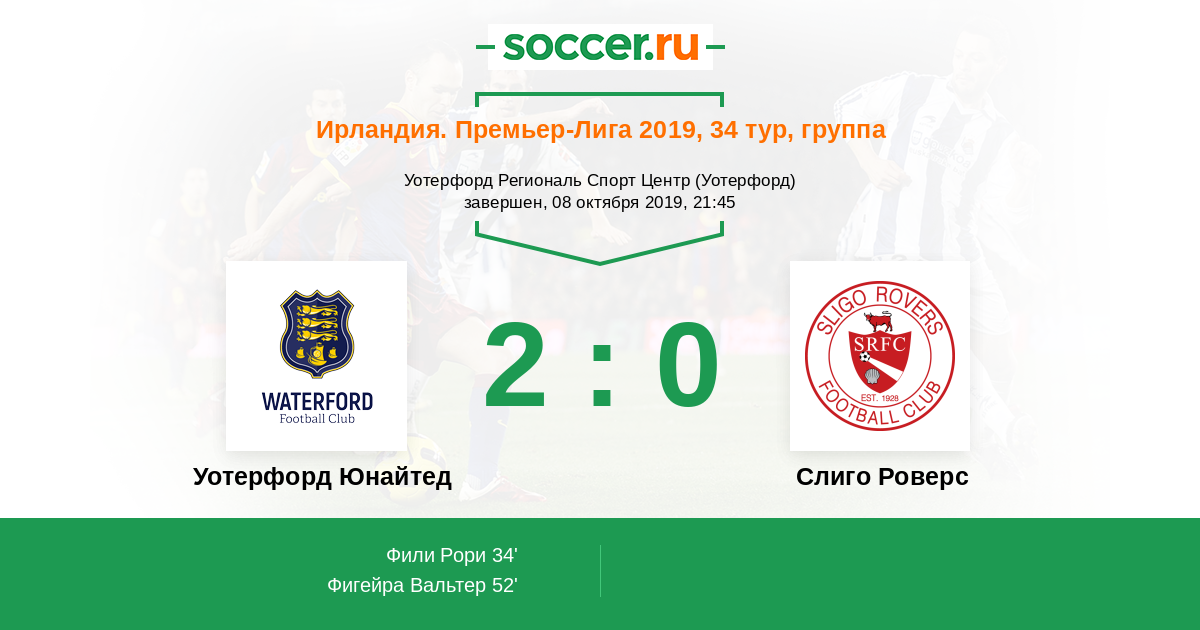 Протокол матча Уотерфорд Юнайтед против Слиго Роверс