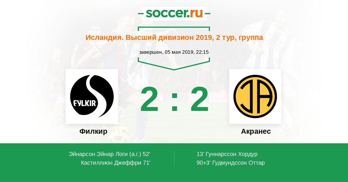 Протокол матча Филкир против Акранес