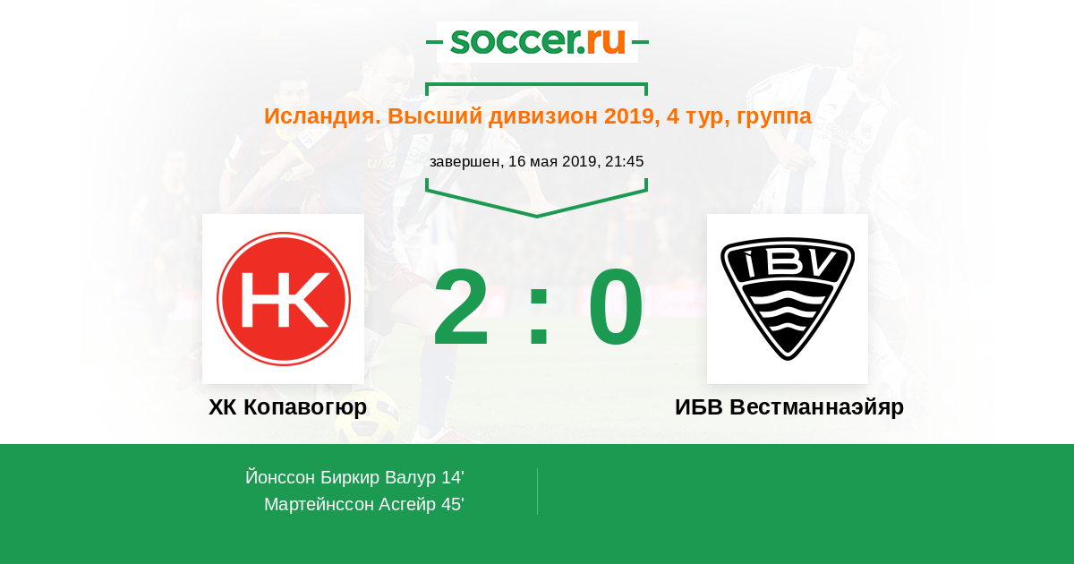 Протокол матча ХК Копавогюр против ИБВ Вестманнаэйяр