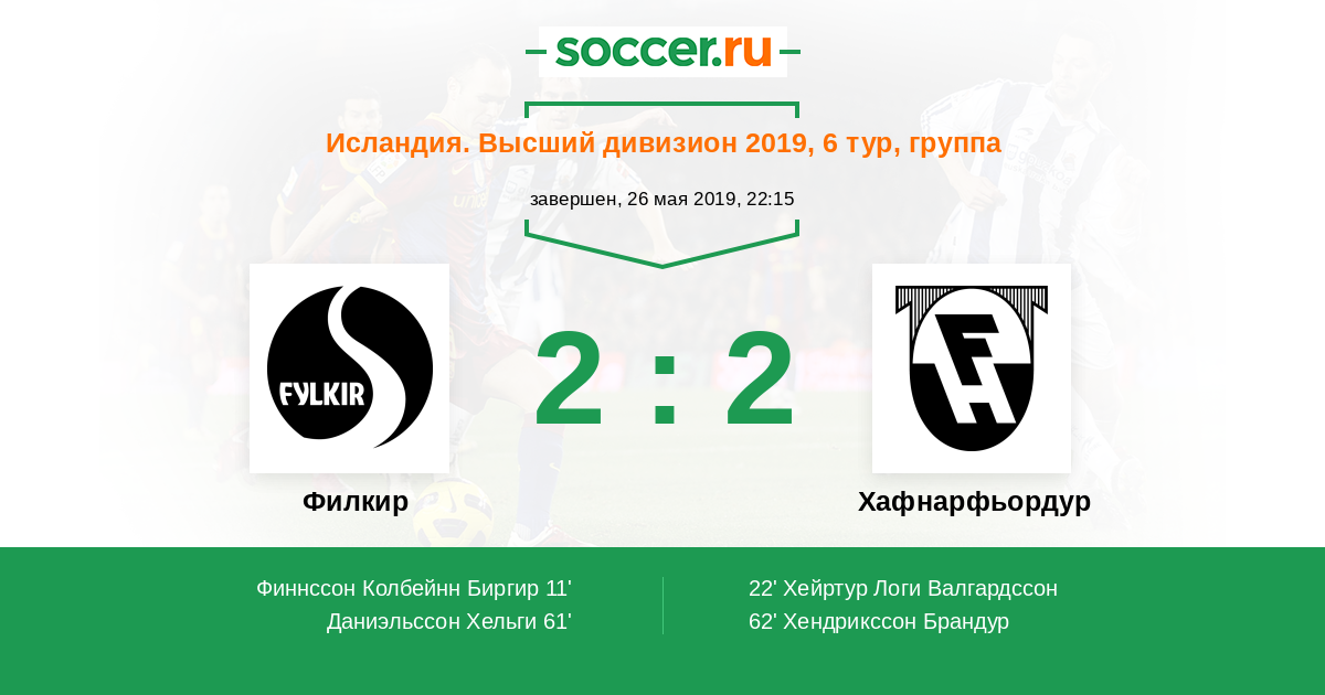 Протокол матча Филкир против Хафнарфьордур