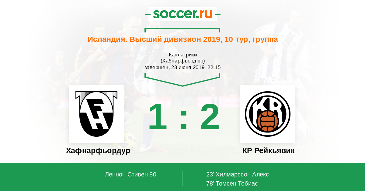 Протокол матча Хафнарфьордур против КР Рейкьявик