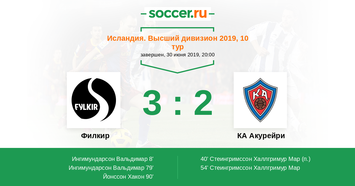 Протокол матча Филкир против КА Акурейри