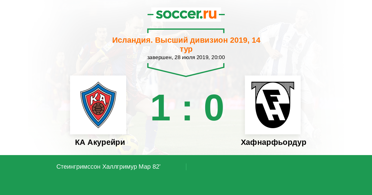 Протокол матча КА Акурейри против Хафнарфьордур