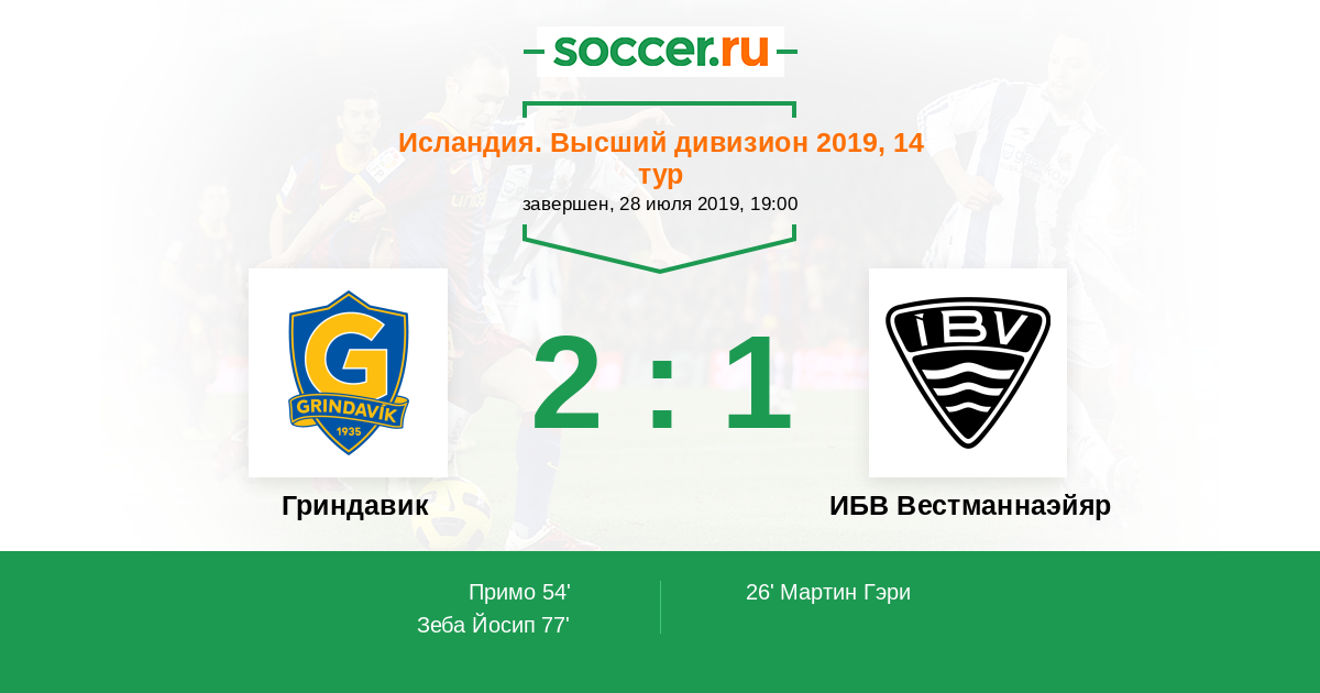 Протокол матча Гриндавик против ИБВ Вестманнаэйяр