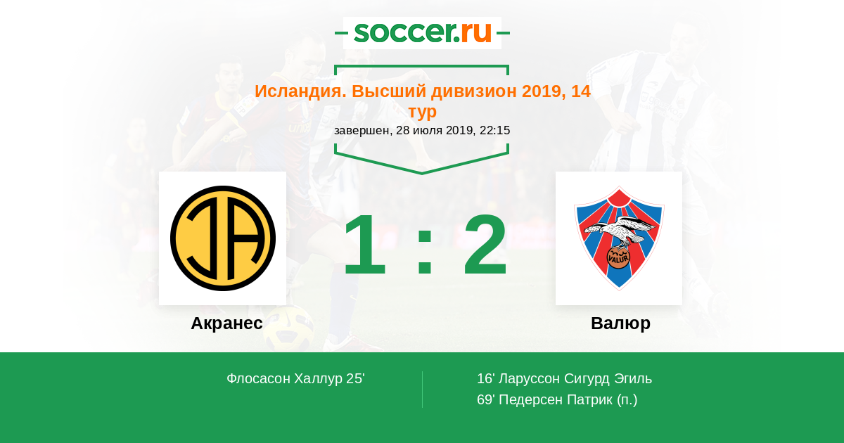 Протокол матча Акранес против Валюр