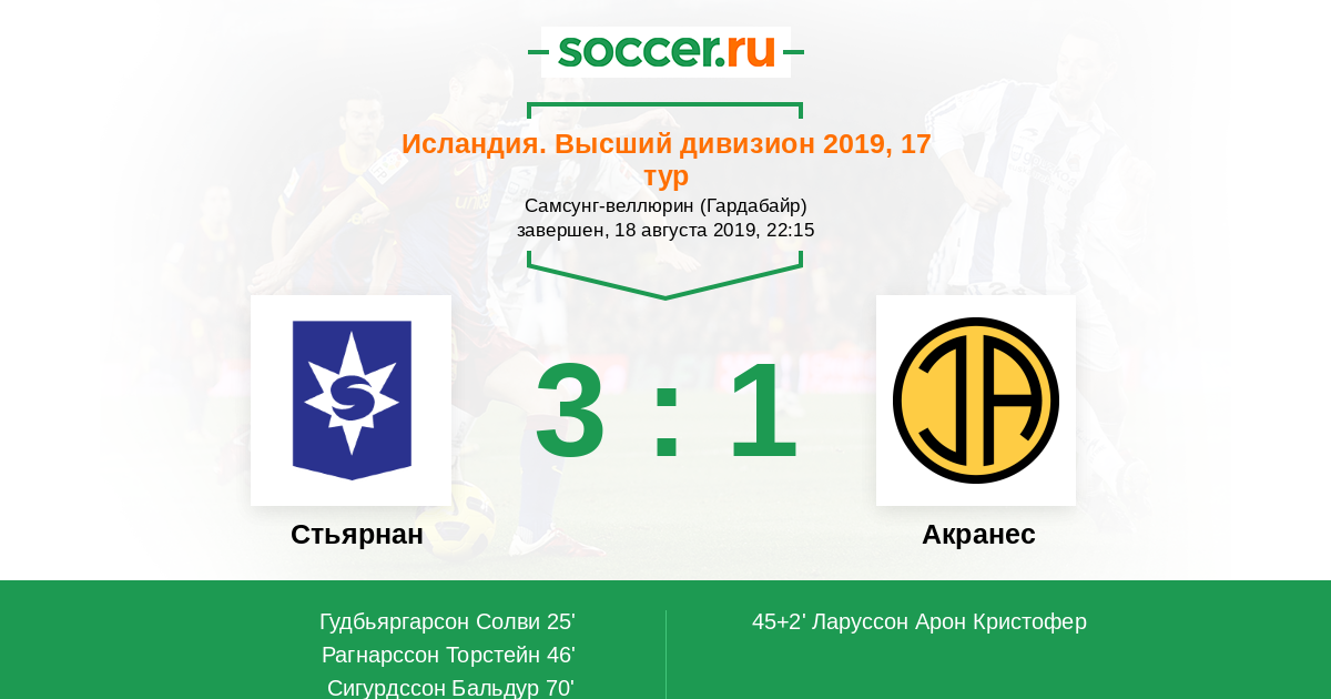 Протокол матча Стьярнан против Акранес