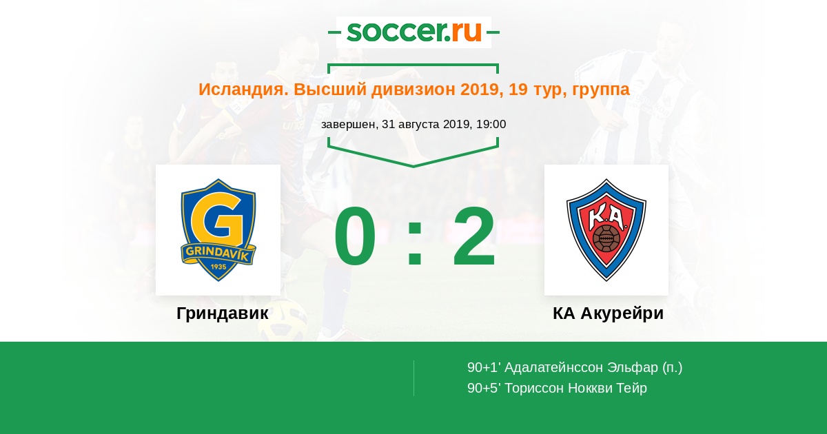 Протокол матча Гриндавик против КА Акурейри
