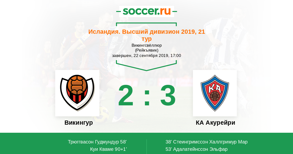 Протокол матча Викингур против КА Акурейри