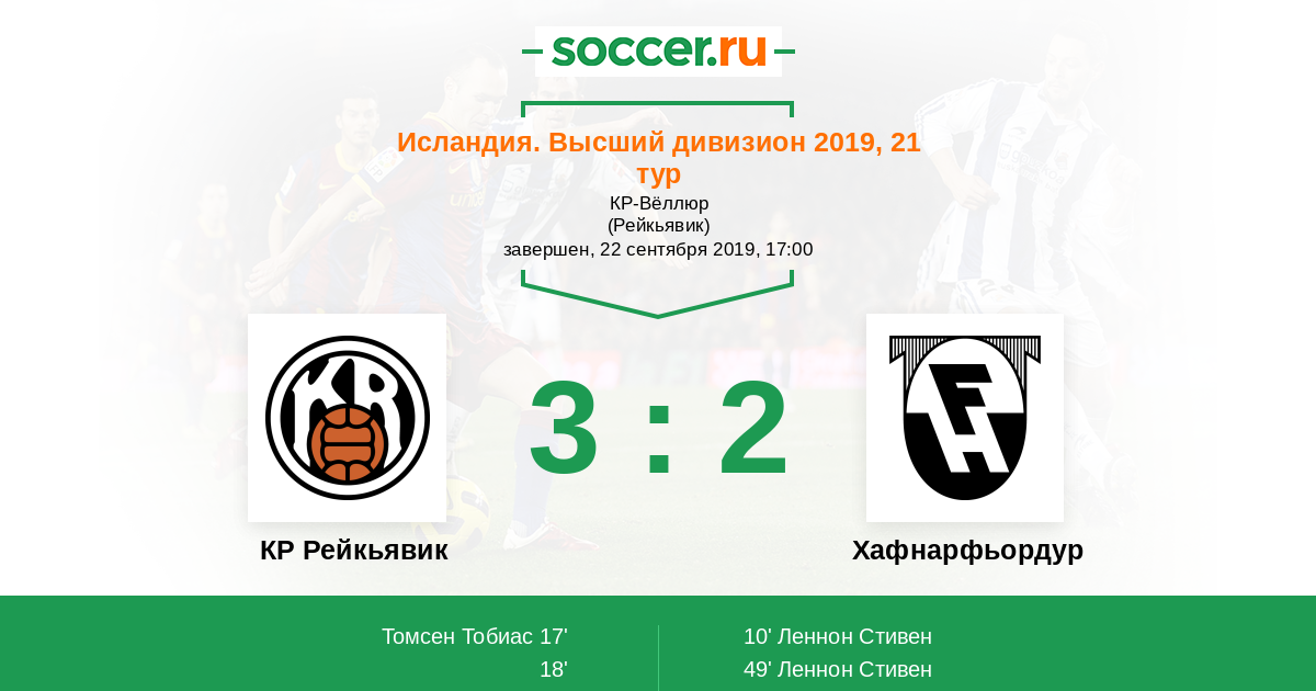 Протокол матча КР Рейкьявик против Хафнарфьордур