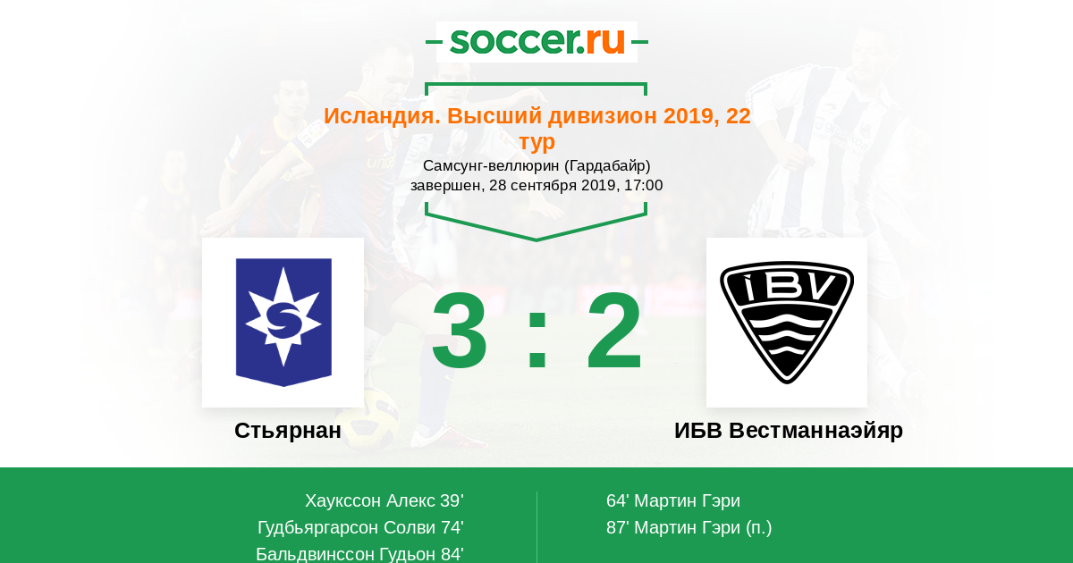 Протокол матча Стьярнан против ИБВ Вестманнаэйяр