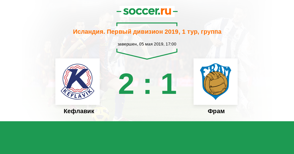 Исландия. Высший дивизион 10.06.2013 Кефлавик Логотип футбольный клуб Кефлавик (Рейкьянесбар) 1:2 Логотип футбольный клуб Фрам (Рейкьявик) Фрам