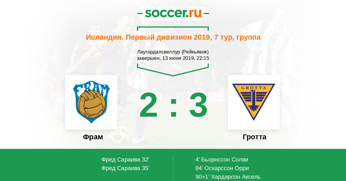 Протокол матча Фрам против Гротта