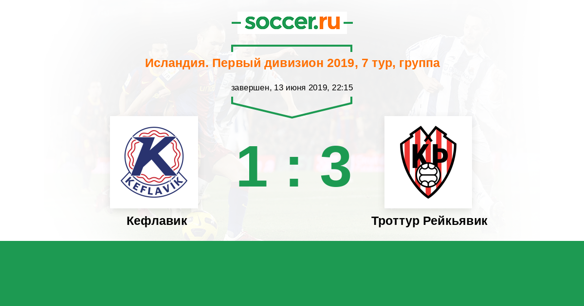 Исландия. Первый дивизион 20.06.2024 Кефлавик Логотип футбольный клуб Кефлавик (Рейкьянесбар) 1:1 Логотип футбольный клуб Троттур Рейкьявик Троттур Рейкьявик
