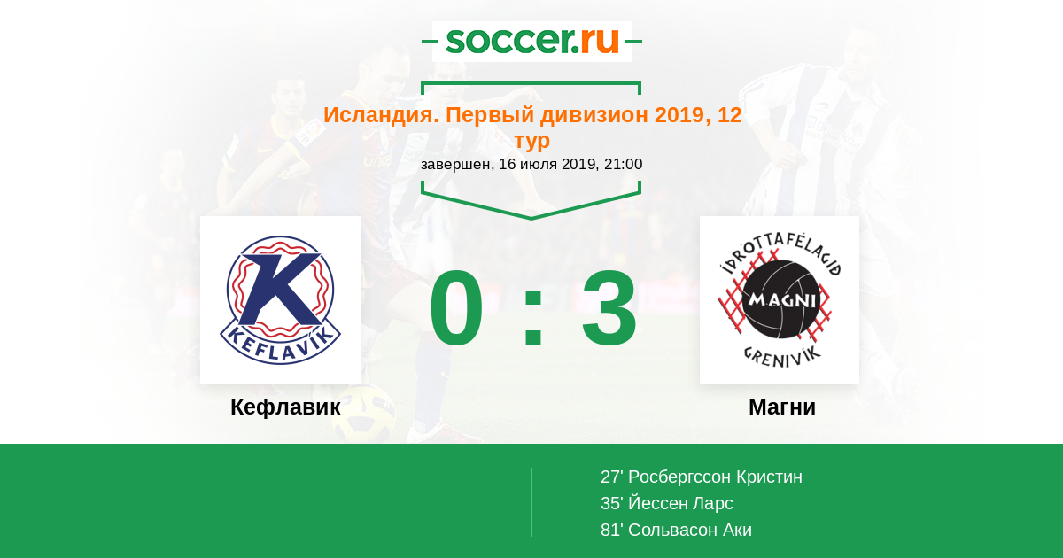 Протокол матча Кефлавик против Магни
