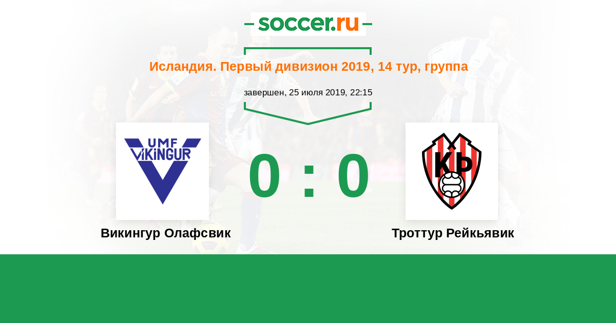 Исландия. Первый дивизион 01.07.2021 Викингур Олафсвик Логотип футбольный клуб Викингур Олафсвик 0:7 Логотип футбольный клуб Троттур Рейкьявик Троттур Рейкьявик
