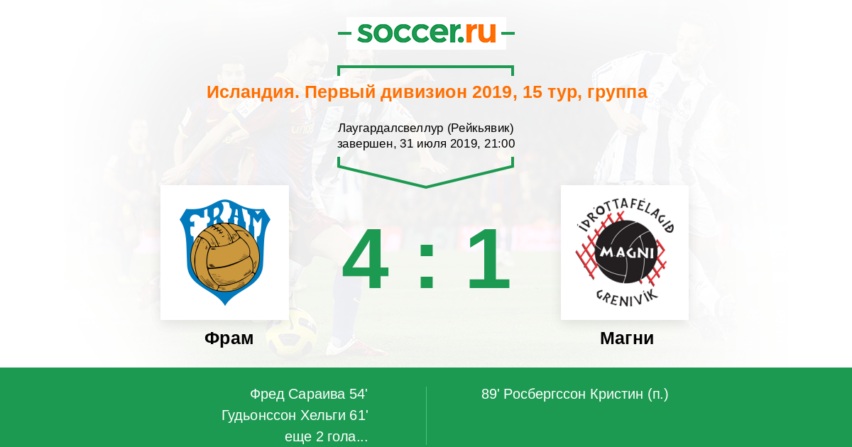 Протокол матча Фрам против Магни