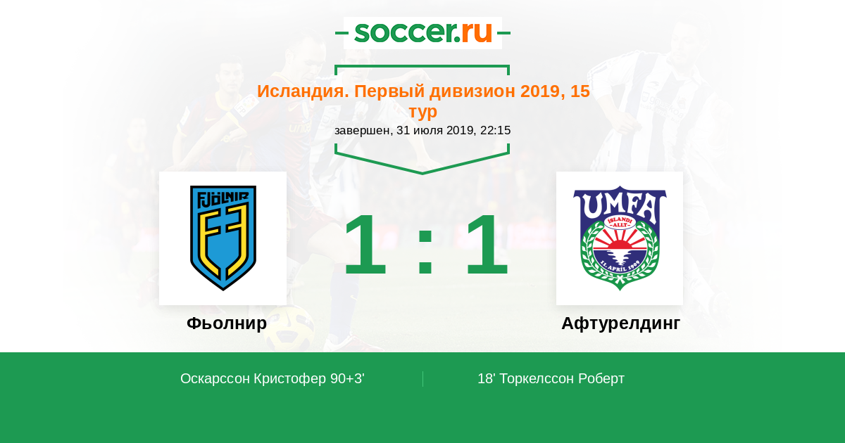 Протокол матча Фьолнир против Афтурелдинг