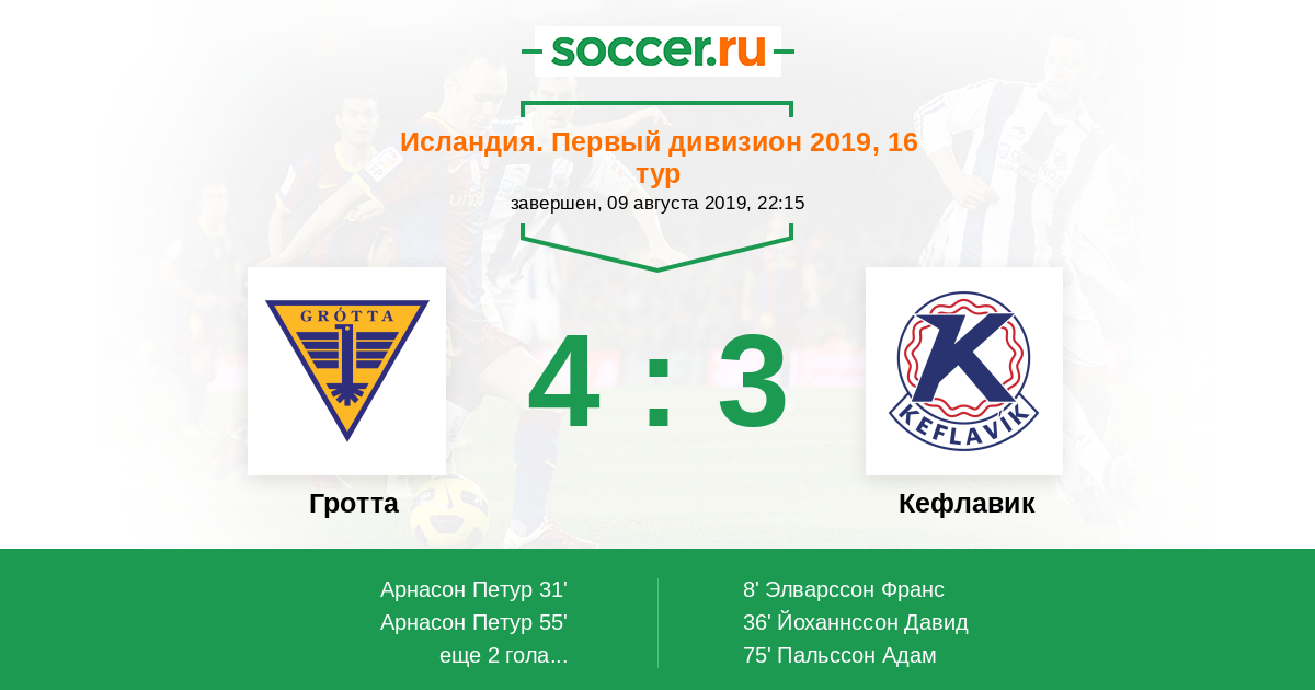 Протокол матча Гротта против Кефлавик