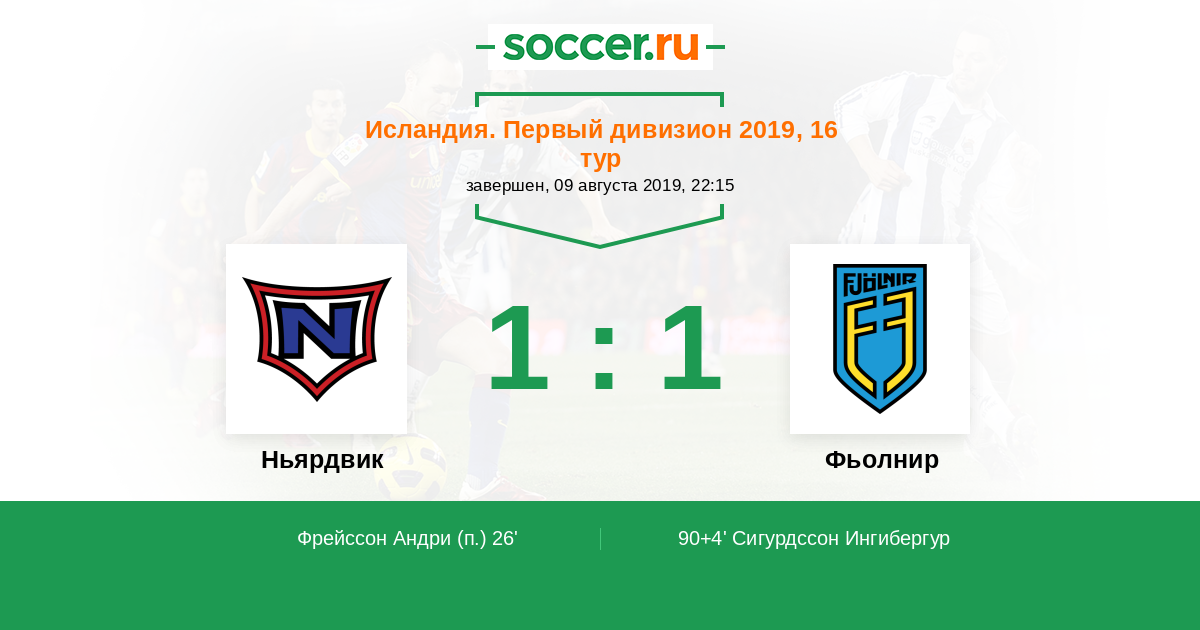 Протокол матча Ньярдвик против Фьолнир