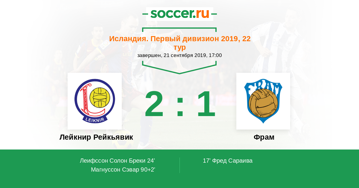 Протокол матча Лейкнир Рейкьявик против Фрам