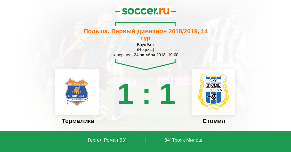 Протокол матча Термалика против Стомил
