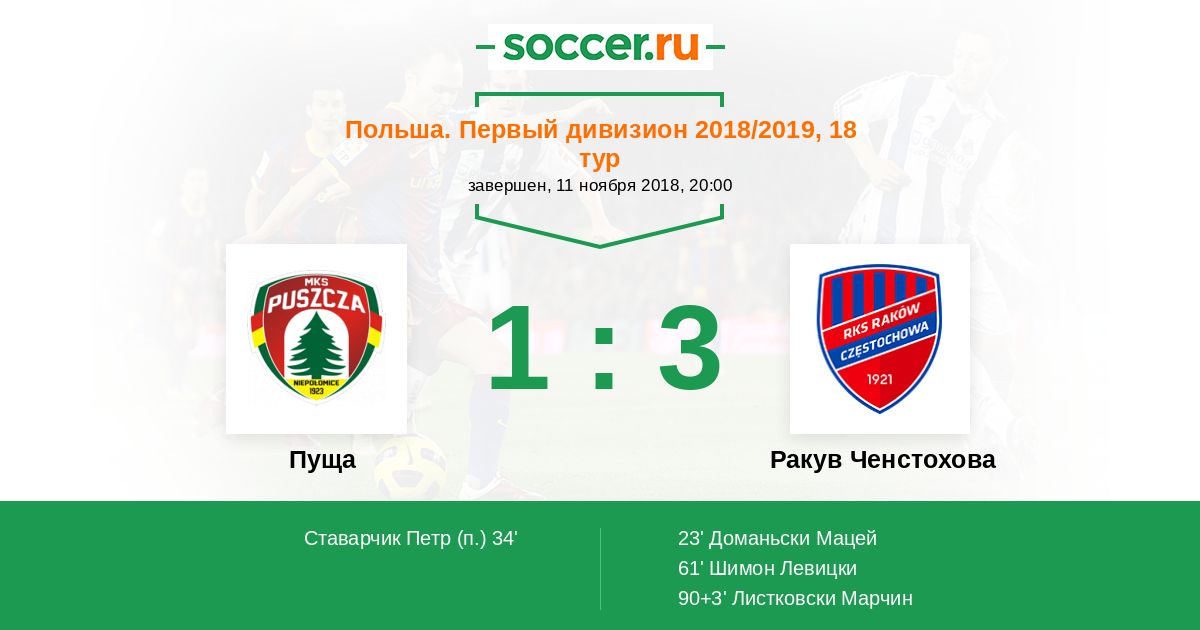 Протокол матча Пуща против Ракув Ченстохова