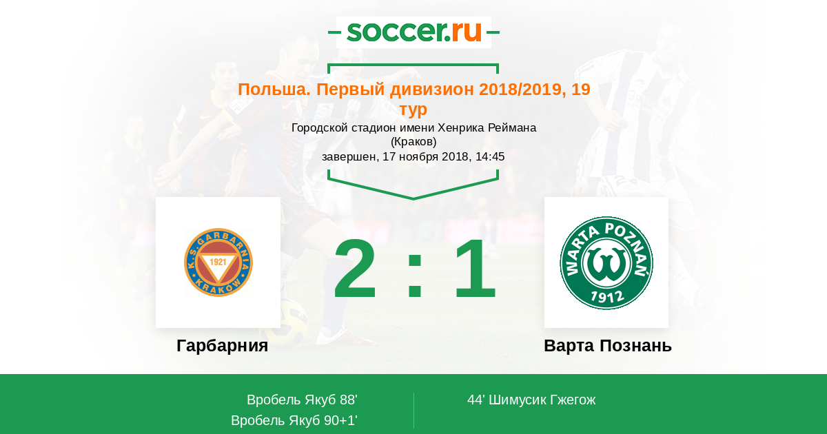 Протокол матча Гарбарния против Варта Познань