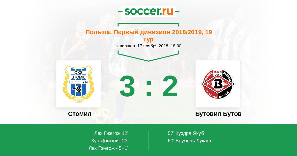 Протокол матча Стомил против Бутовия Бутов