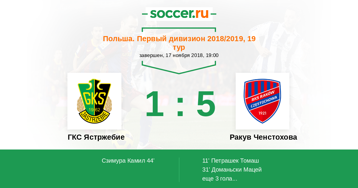 Протокол матча ГКС Ястржебие против Ракув Ченстохова
