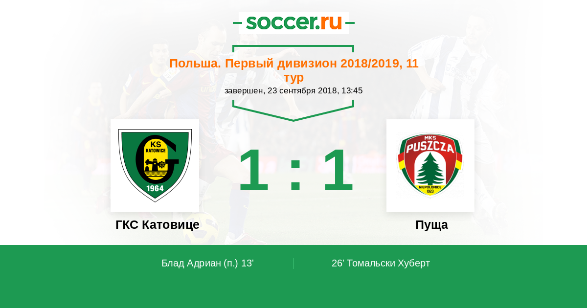 Протокол матча ГКС Катовице против Пуща