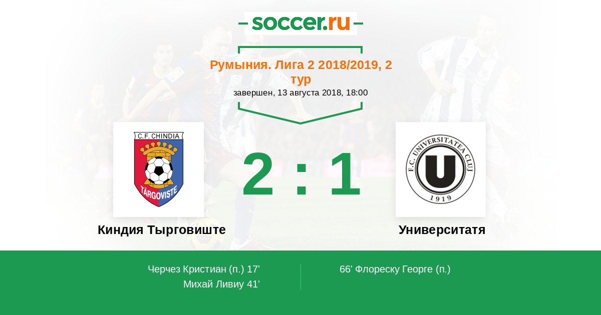 Протокол матча Киндия Тырговиште против Университатя Клуж