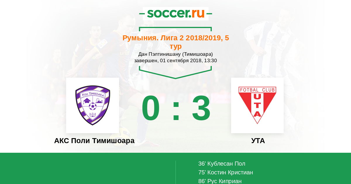 Протокол матча АКС Поли Тимишоара против УТА