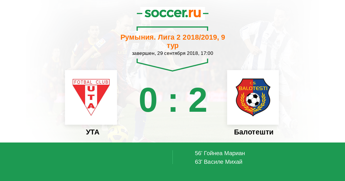 Протокол матча УТА против Балотешти
