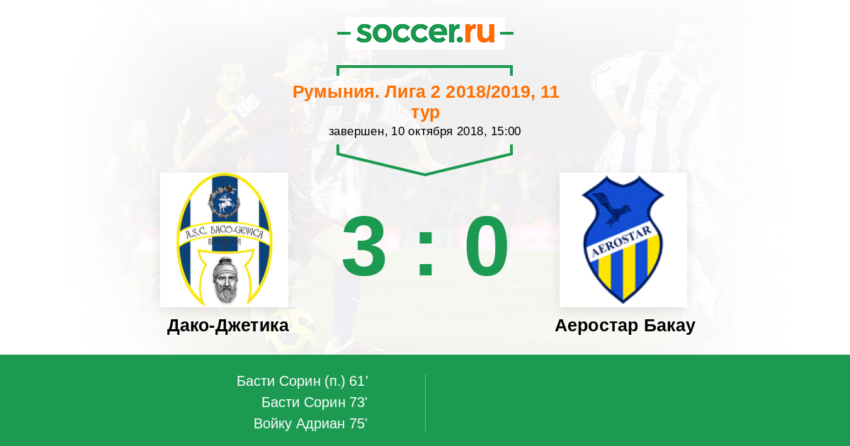 Протокол матча Дако-Джетика против Аеростар Бакау