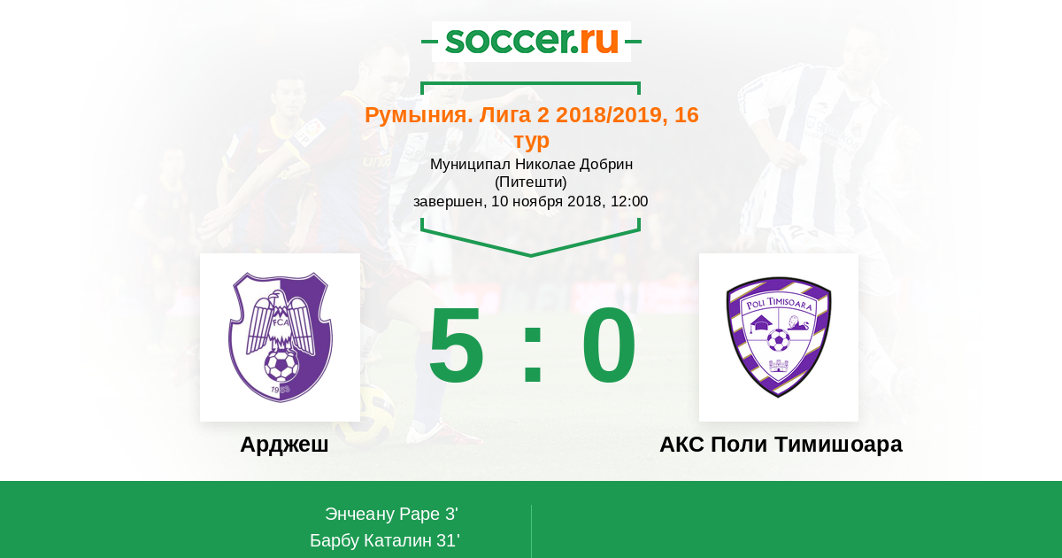 Протокол матча Арджеш против АКС Поли Тимишоара