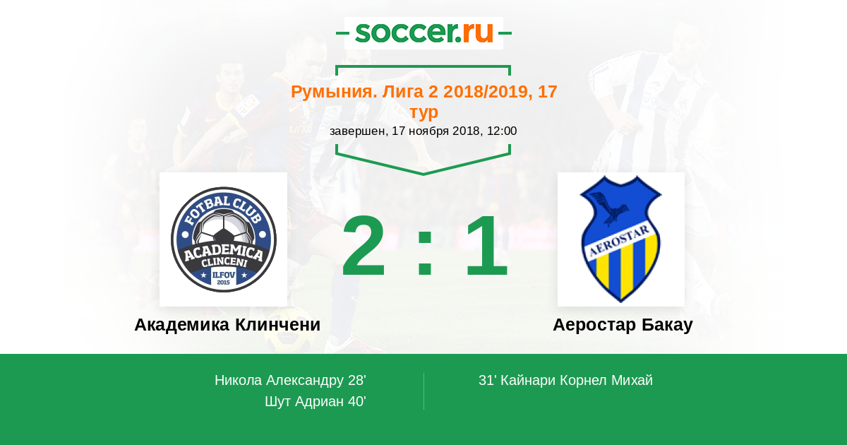 Протокол матча Академика Клинчени против Аеростар Бакау