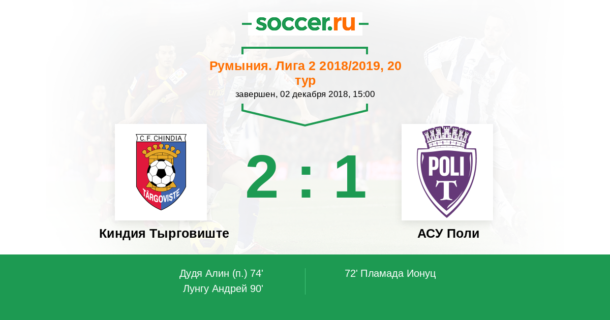 Протокол матча Киндия Тырговиште против АСУ Поли