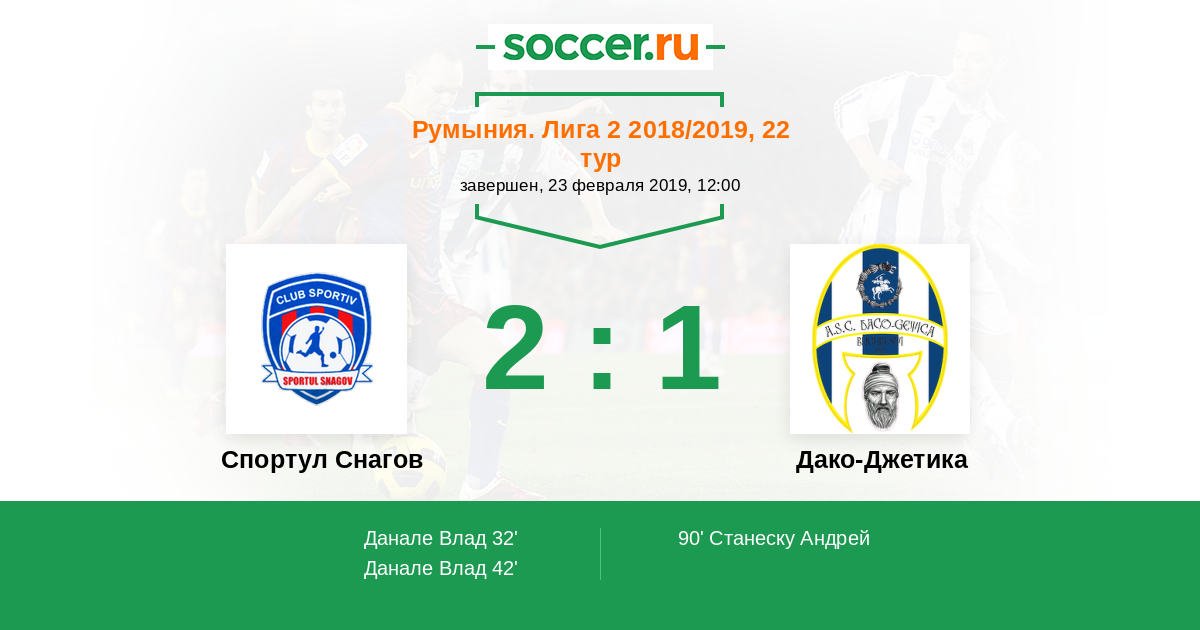 Протокол матча Спортул Снагов против Дако-Джетика
