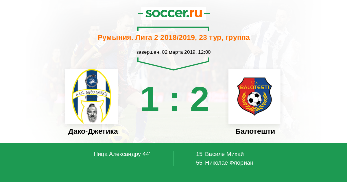 Протокол матча Дако-Джетика против Балотешти