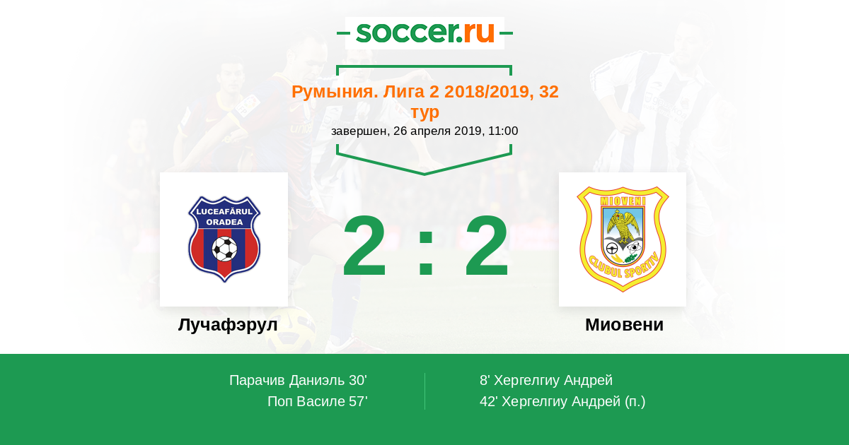 Протокол матча Лучафэрул против Миовени