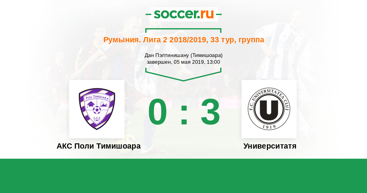 История матча АКС Поли Тимишоара против Университатя Клуж