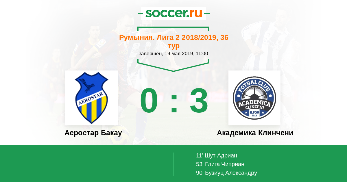 Протокол матча Аеростар Бакау против Академика Клинчени