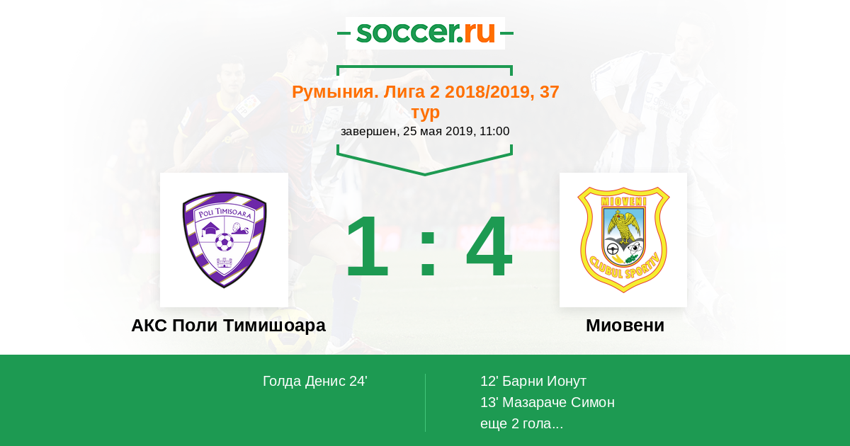Протокол матча АКС Поли Тимишоара против Миовени
